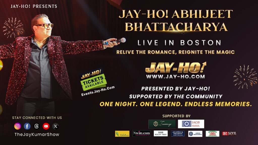 Boston, MA – October 2025 — Boston is set to relive the magic of melody and romance as Jay-Ho! The Jay Kumar Show presents Abhijeet Bhattacharya LIVE in Concert – “Relive the Romance, Reignite the Magic” on Sunday, October 26, 2025, at the J. Everett Collins Center for the Performing Arts, Andover, MA.