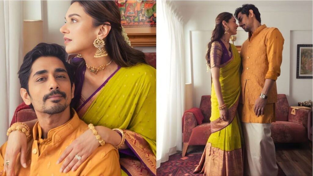 The internet is reacting with particular warmth to Siddharth’s coordinated appearance alongside Aditi. Dressed in a mustard kurta with delicate embroidery paired with an ivory veshti, his look complements rather than competes — echoing the same philosophy of restraint and reverence for tradition.