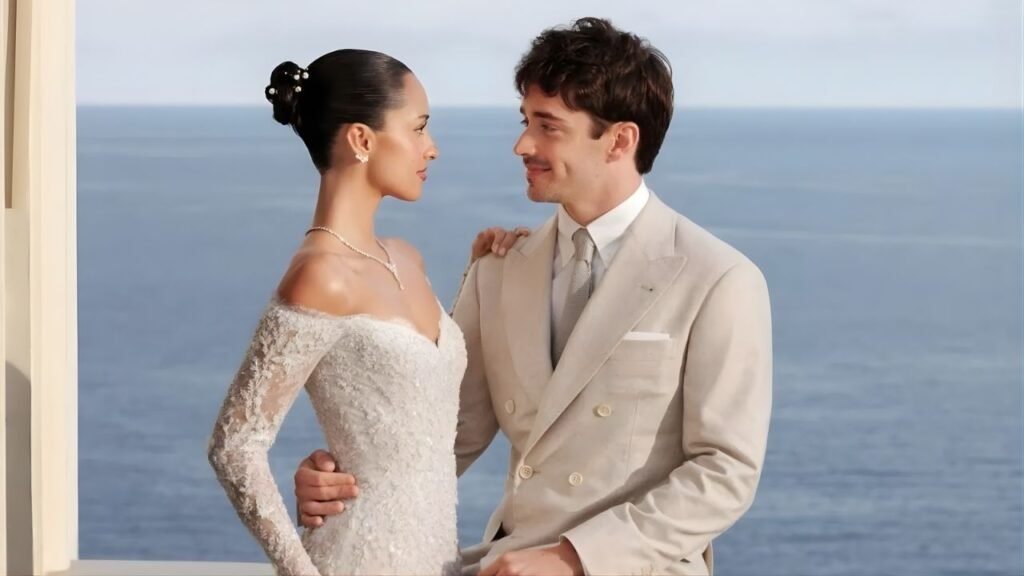The couple exchanged vows in Monaco — a fitting location given Charles Leclerc’s Monte Carlo roots.