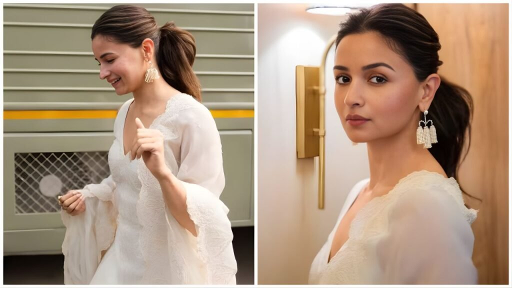 Alia Bhatt Farshi Salwar look is once again setting major fashion goals, and according to celebrity stylists, this might be one of her most refined ethnic appearances yet. For a recent outing, the actor embraced timeless Indian craftsmanship in a custom all-white Torani ensemble that blended heritage with modern minimalism. Fans noticed how effortlessly she carried the voluminous silhouette, proving that understated fashion often makes the strongest statement.