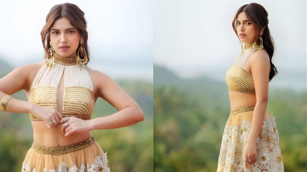 If traditional wedding fashion often leans toward heavy embroidery and ballroom grandeur, Bhumi Pednekar’s latest appearance offers a refreshing counterpoint. The actor stepped out in a metallic-toned lehenga that balanced couture craftsmanship with resort-ready fluidity — a look that felt equally at home at a beachside soirée as it would at a sangeet night.