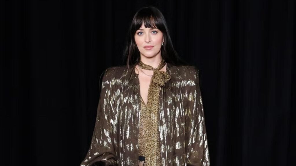 Dakota Johnson made a stunning appearance at Paris Fashion Week, turning heads in skimpy black lace shorts and sheer patterned tights. The actor, who has recently moved on from her breakup with Chris Martin, represented Valentino during the Italian luxury house’s first runway show since the passing of its founder, Garavani Valentino. Fans and fashion critics alike praised her bold and OTT ensemble, which blended coquette charm with edgy runway appeal.