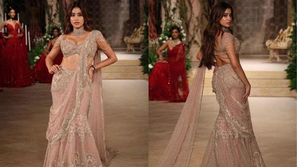 If you want to make a statement, the mermaid-style lehenga is your best bet. Hugging your curves and flaring out at the knees, it’s bold, chic, and unforgettable. Janhvi Kapoor makes this style look effortless and red-carpet worthy.