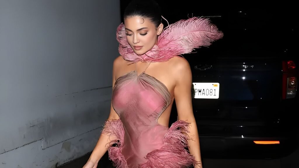Kylie Jenner made a glamorous entrance at her Kylie Cosmetics Christmas party in Los Angeles, turning heads in a racy pink feathered gown from Conner Ives’ Spring 2026 collection. Known for setting style benchmarks rather than attending typical festive gatherings, Kylie’s party was nothing short of a glam affair, reflecting her signature over-the-top aesthetic. Her presence instantly lit up the venue, setting the tone for a star-studded evening.