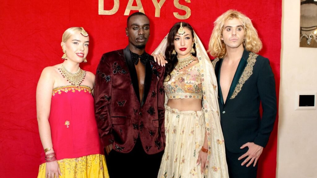 The collection dazzled with gemstone-inspired hues, luxurious textures, and intricate hand embroidery. The runway featured hand-embellished lehenga sets, sculptural blouses, regal capes, and tailored menswear, all meticulously crafted to blend tradition with contemporary style. From ivory silks and metallic gold fabrics to bold fuchsia and marigold contrasts, every creation celebrated festivity, opulence, and international elegance.