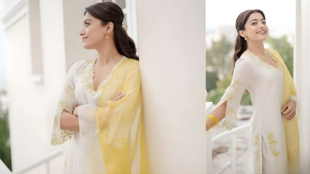 As summer approaches, lightweight fabrics and soft colours become essential. Rashmika’s ivory yellow kurta set perfectly captures this seasonal shift.