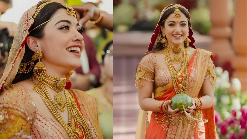 Images of Rashmika wearing intricate gold pieces featuring classical motifs quickly circulated online, highlighting a broader movement already gaining momentum in the bridal market. Across India, modern brides are increasingly embracing heritage jewellery styles that combine cultural meaning, fine craftsmanship, and generational value.