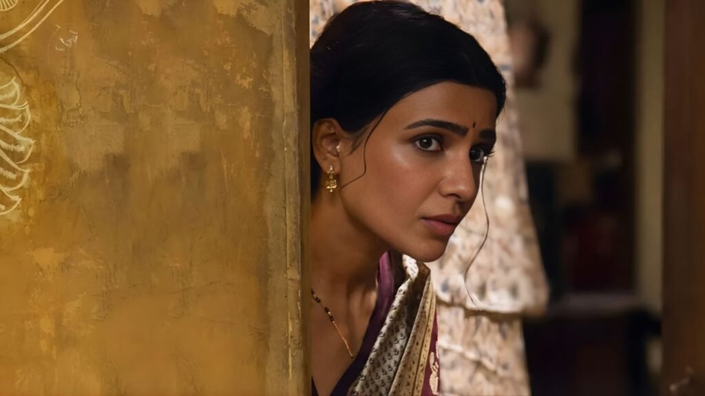 In the newly unveiled poster, Samantha is seen cautiously peeking from behind a wall. Dressed in a simple saree, her expression hints at tension and emotional intensity. The visual framing suggests a narrative rooted in realism.