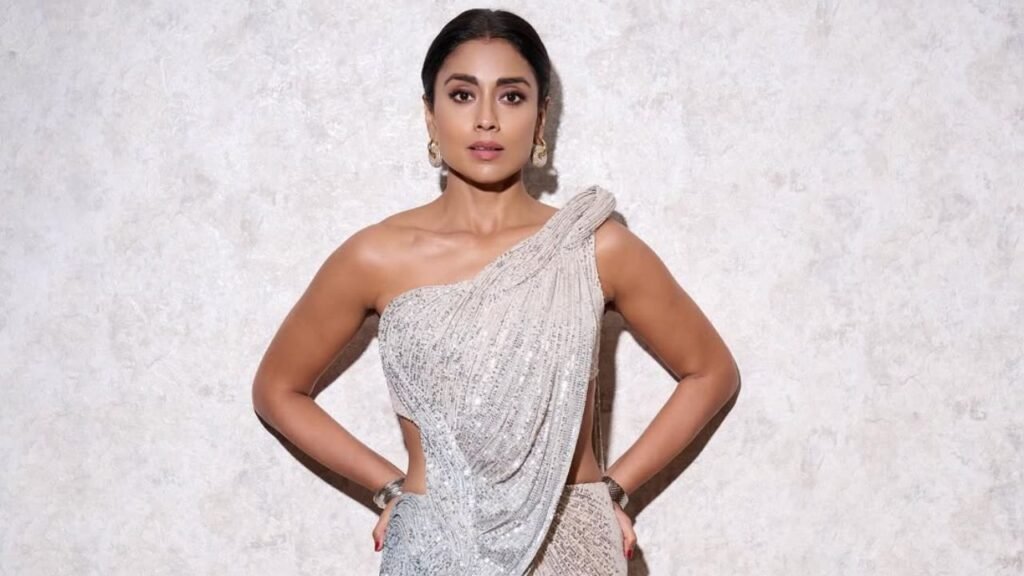 Shriya Saran once again proved why she remains a true red-carpet favorite. The actress turned heads in a shimmering silver ensemble by Gaurav Gupta, a designer celebrated for his avant-garde creations and architectural finesse. The one-shoulder gown, both modern and sculptural, highlighted Shriya’s timeless grace and effortless confidence.