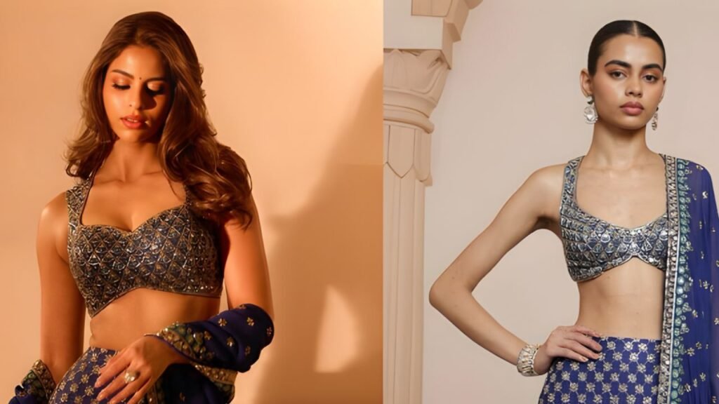 Suhana Khan has once again proven her growing influence in the world of Indian fashion. For her latest appearance, she dazzled in a raw silk blue lehenga by designer Arpita Mehta, an ensemble that struck the perfect balance between traditional craftsmanship and contemporary elegance. The look not only highlighted Suhana’s refined fashion sensibilities but also underscored how youthful styling can transform couture into something fresh, aspirational, and beautifully modern.