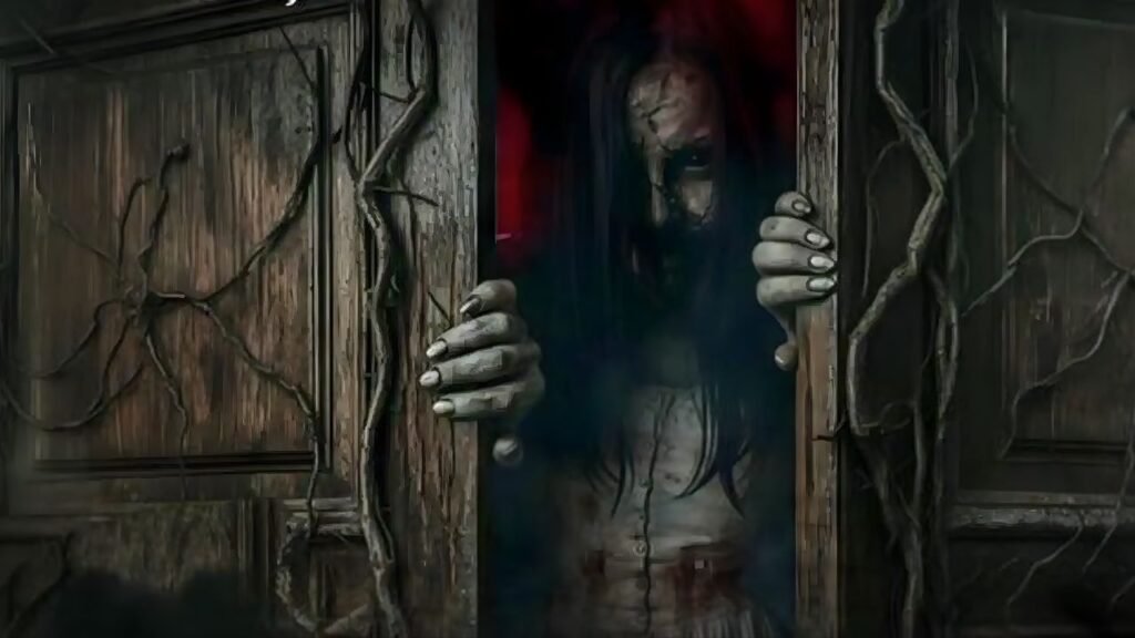 The newly released poster sets a sinister tone from the outset. It features a mysterious woman emerging from an old, half-open wooden wardrobe wrapped in creeping vines. An ominous red glow emanates from inside, casting eerie shadows across the smoky surroundings.