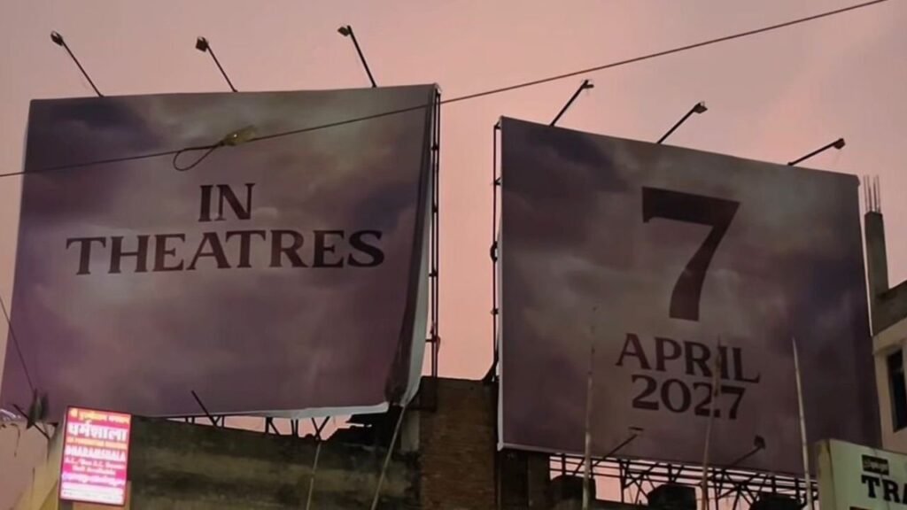 These displays, carrying the line “April 7, 2027 – In Theatres,” quickly went viral on social media platforms. Fans were quick to note that the typography, colour palette, and thematic design closely resemble the visual tone the film is rumoured to explore.